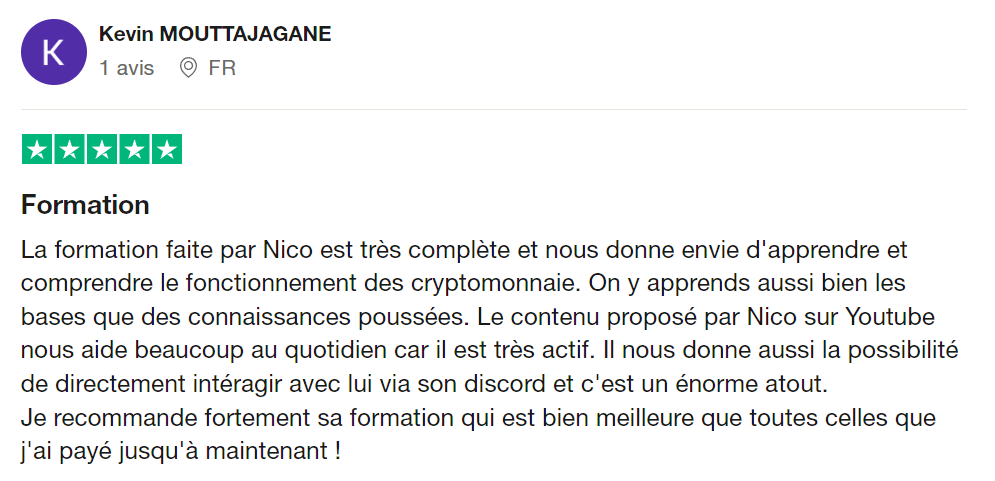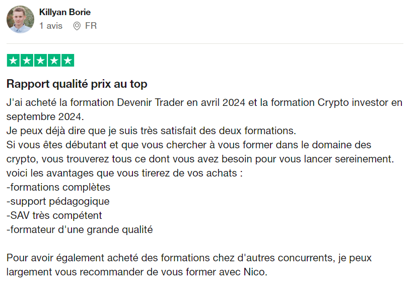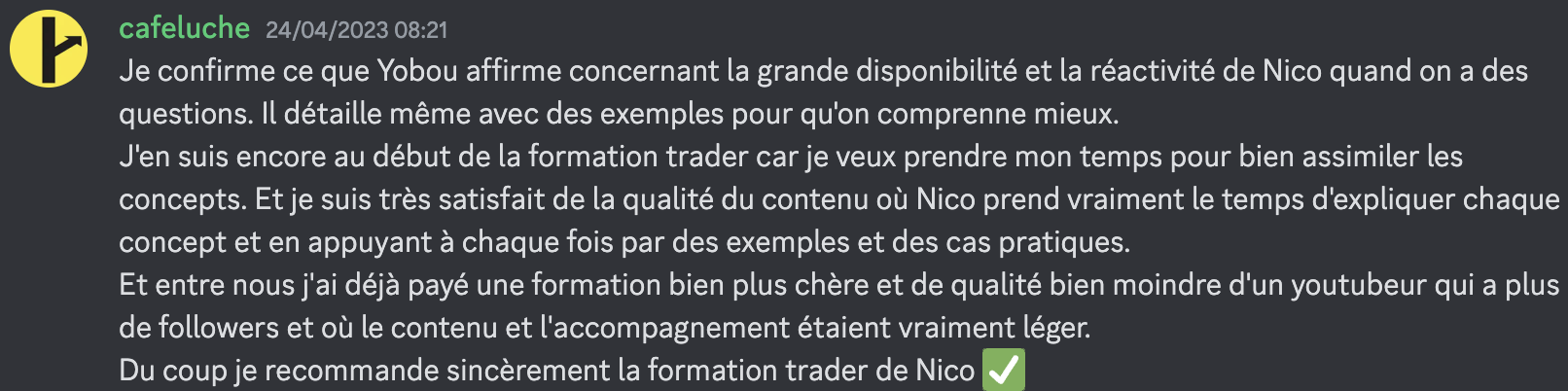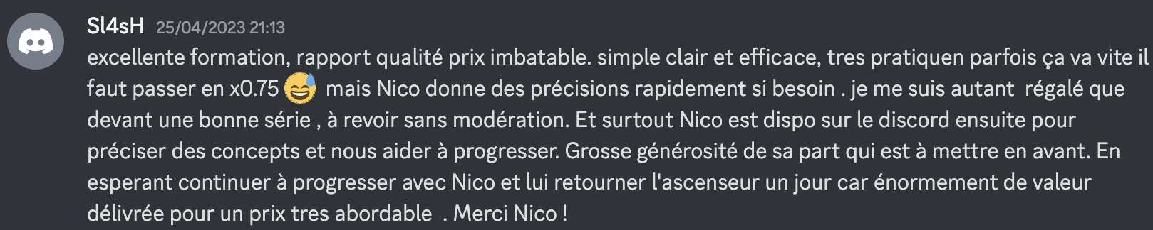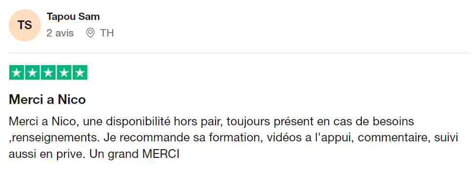 đŹ Elias « Le prix est largement abordable en vue du contenu et la qualitĂ© de la formation comparĂ© Ă ce que certains autres « formateurs » plus connus et plus influents peuvent proposer »