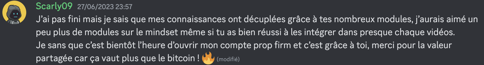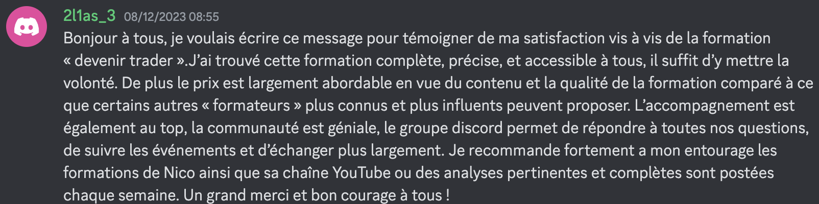 Beaucoup de membres expĂ©rimentĂ©s lâont rejoint aprĂšs avoir suivi d'autres formations ou tradĂ© seul, et ils ont trouvĂ© enfin la clartĂ© et la structure quâil leur manquait.